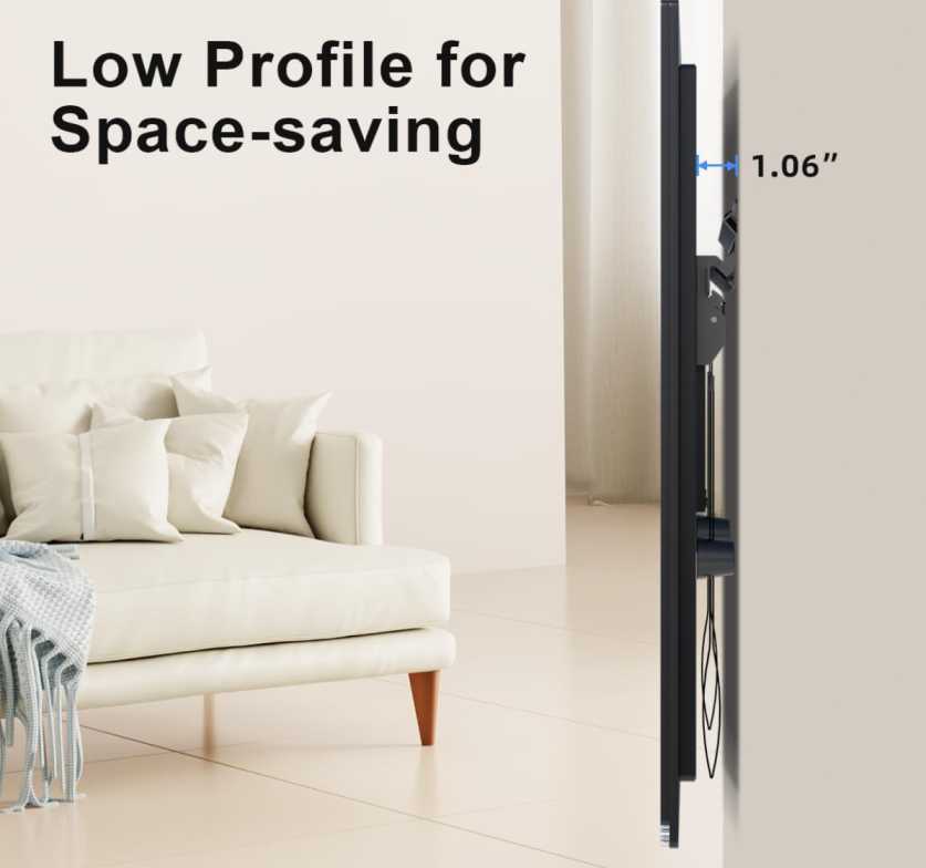 The low-profile design (just about 1 inch gap) gives your TV a neat, flush finish without bulky hardware sticking out.