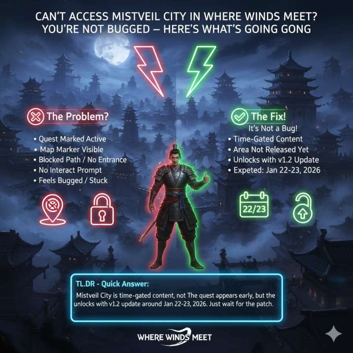 Once the update goes live in Where Winds Meet, you’ll be able to access Mistveil City normally and continue the quest without doing anything extra.