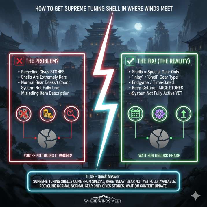 If you’re recycling gear over and over hoping to see a Supreme Tuning Shell, only to get Large Tuning Stones every single time, take a breath — you’re not missing something obvious, and your game probably isn’t bugged. This is a super common experience right now, and a lot of players are stuck in the exact same loop, second-guessing their gear, their level, or whether they skipped some hidden requirement.